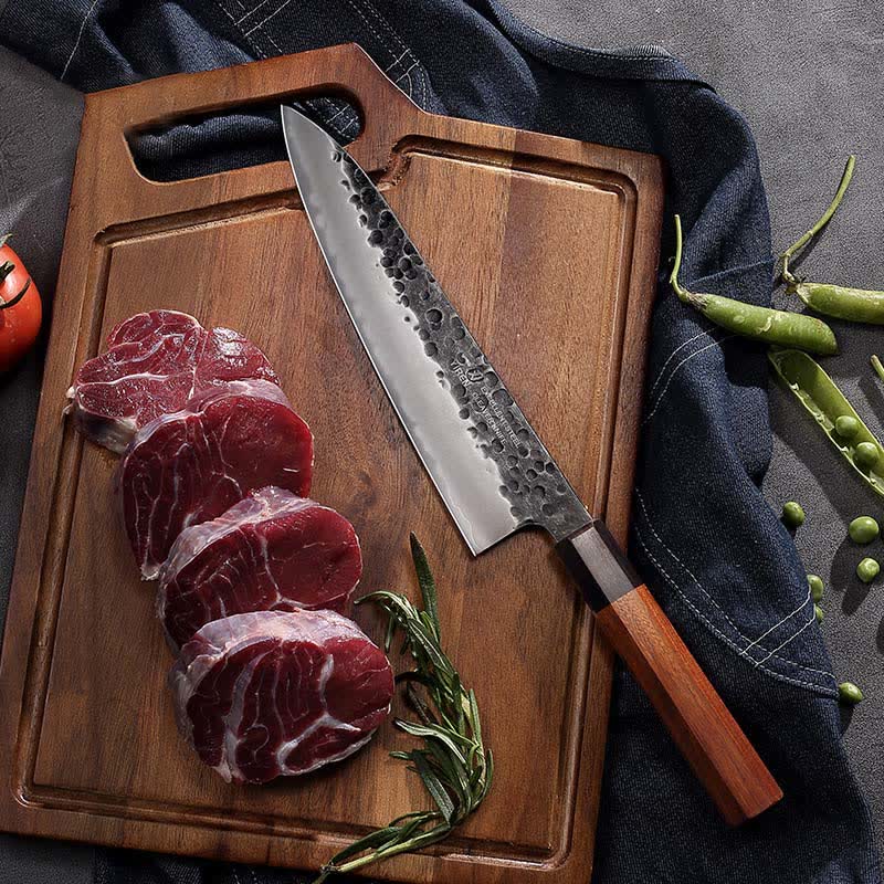 All featured knives are hand-made in Asia,Each of them is carefully heat-treated and sharpened to perfection for razor-sharp cutting and extreme durability. Applying ergonomics and mechanical levers principles, we greatly improve customers’ cutting experience.