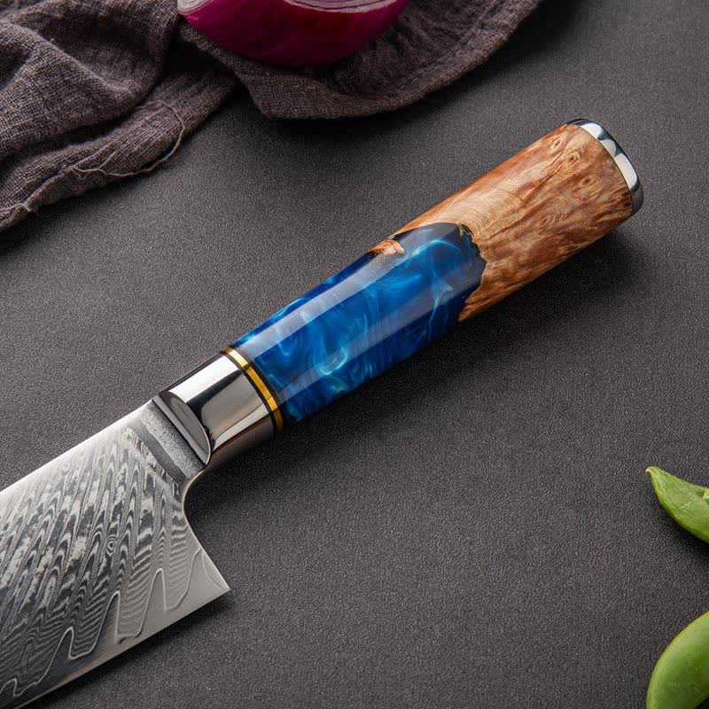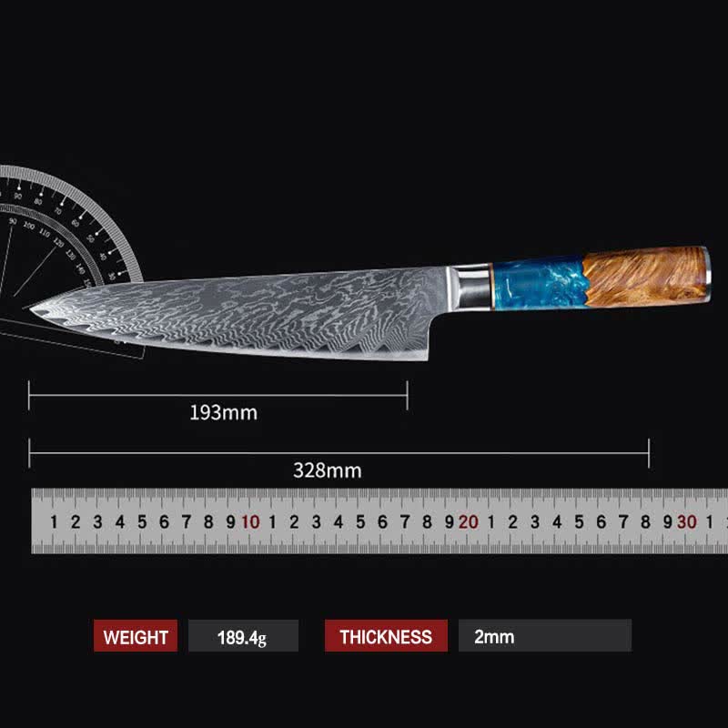 - Crafted from Japanese VG10 high carbon steel and layered with 67 layers of Damascus steel to ensure excellent sharpness and durability.