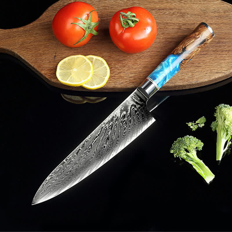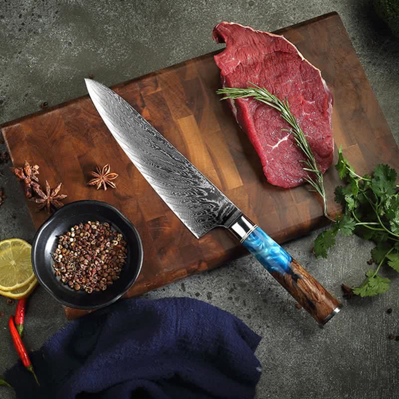About Gyuto:Gyuto is another type of Japanese knife that makes perfect all-purpose cutters, slicers and kitchen knives. Although its blade is thin, it retains its length and circular shape, making it easy to cut meat, fish and vegetables. Its shape and thickness are achieved by the method of making a katana, which slices the fibers of food rather than crushing them. This makes it a very useful knife to keep meat fresh and lock in its flavor.