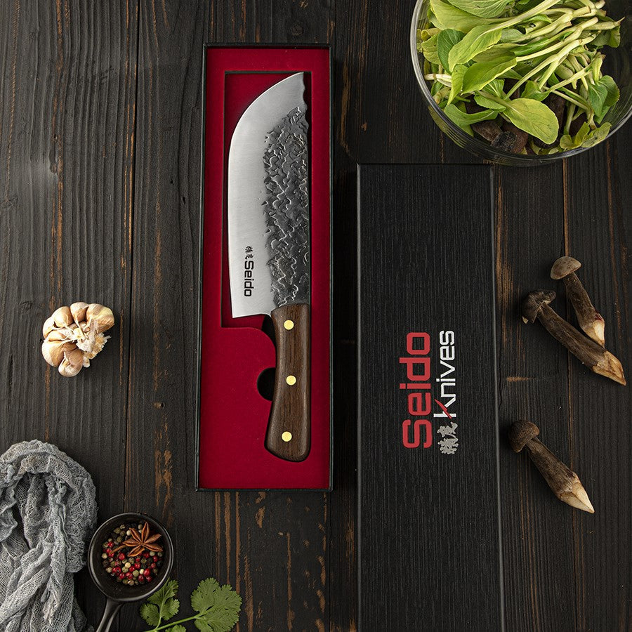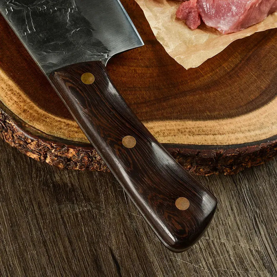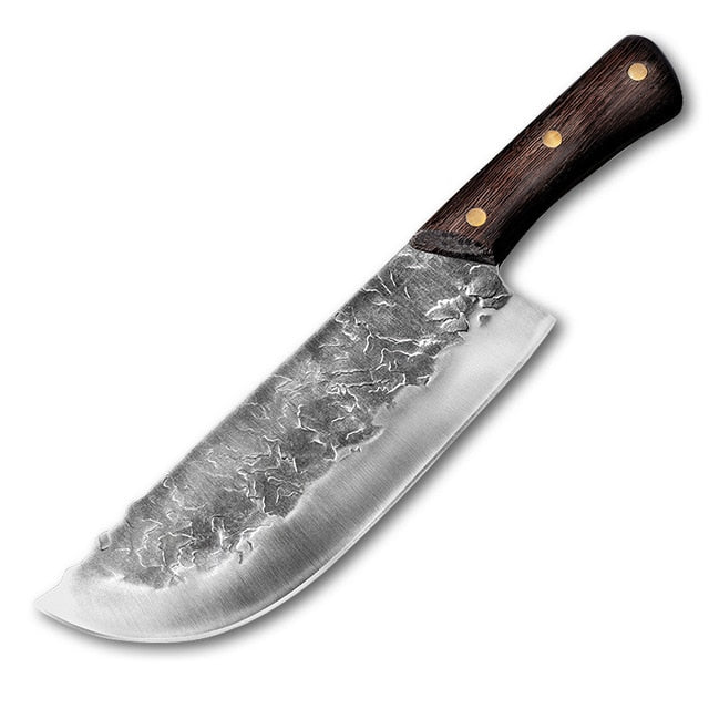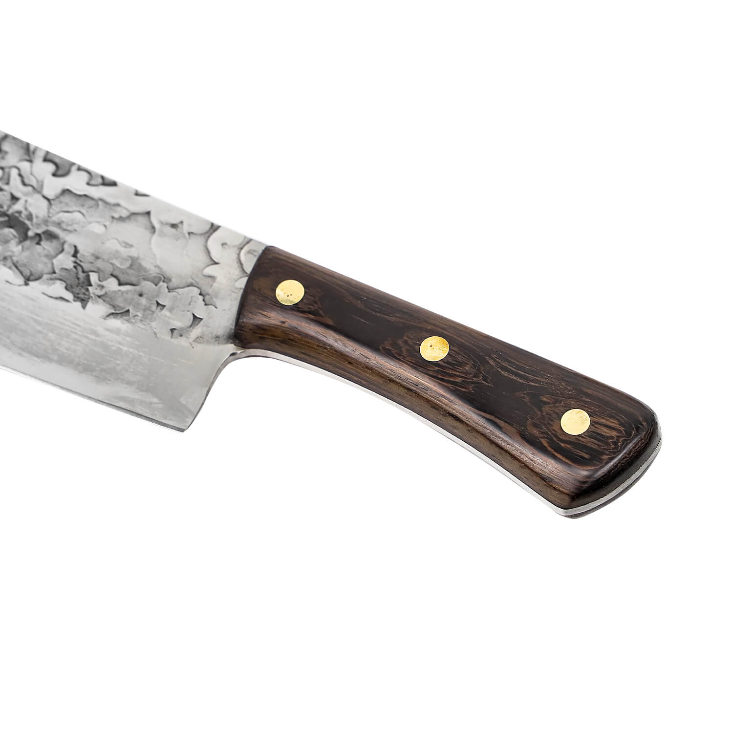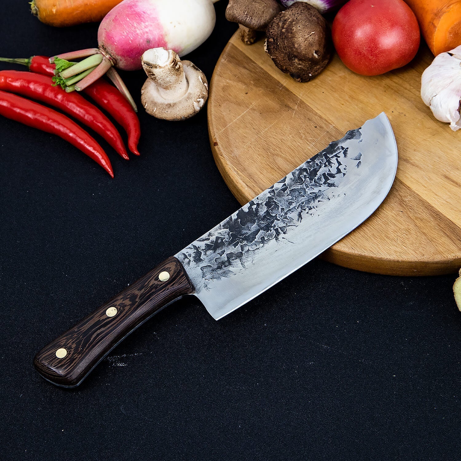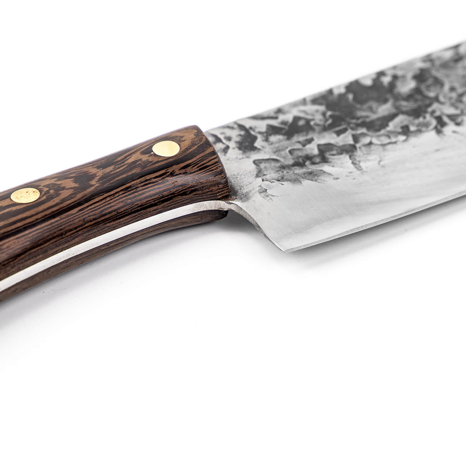 Introducing our signature artisan crafted, Nikuya Butcher Knife. This razor-sharp versatile blade is so sharp it can effortlessly cut through though meat and tackle any slicing task with ease. This handmade, full-tang butcher knife is well balanced and strong. This knife is excellent for slicing though meat, succulent BBQ and can even be used for chopping hardy vegetables. It's overall a versatile kitchen knife which can replace many knives in your kitchen.